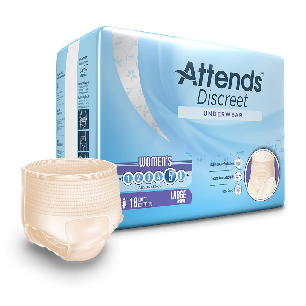 Attends Discreet Women's Underwear, Level 5 Absorbency—